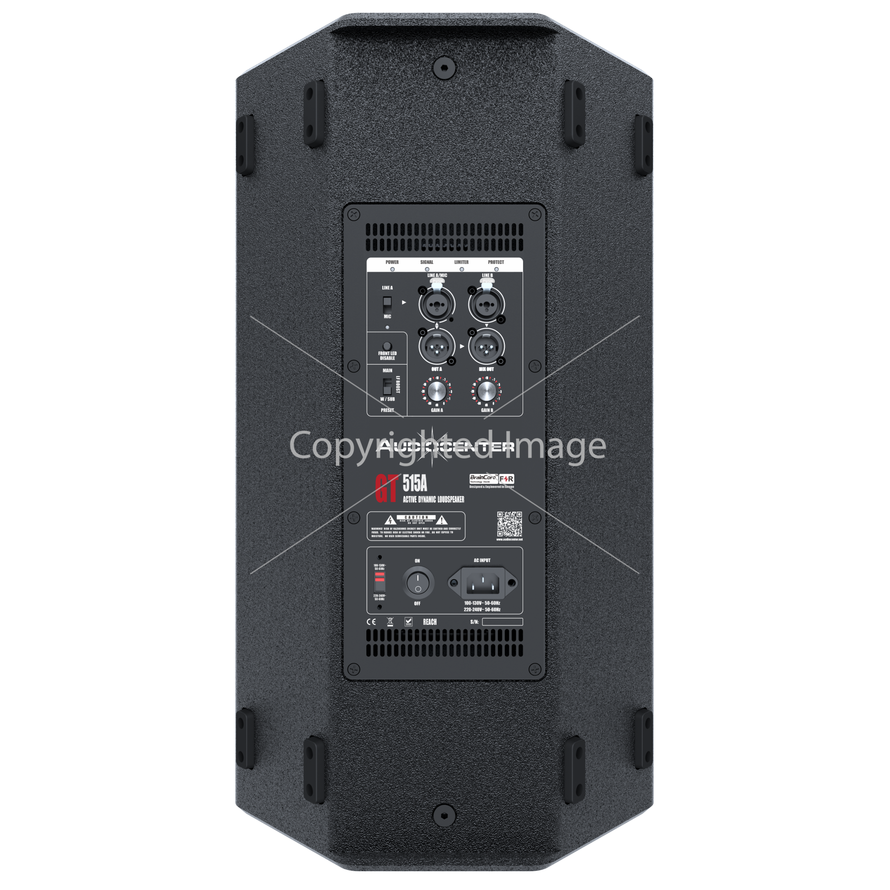 АС GT515A имеет два комбо-входа (2-полосный XLR и монофонический джек 6,35). Вход CH A может быть переключен между линейным балансным входом и микрофонным входом. Два источника звука можно внутренне микшировать и выводить на балансный выход, передавая сигнал на несколько колонок для удобного каскадного распределения сигнала в системе.