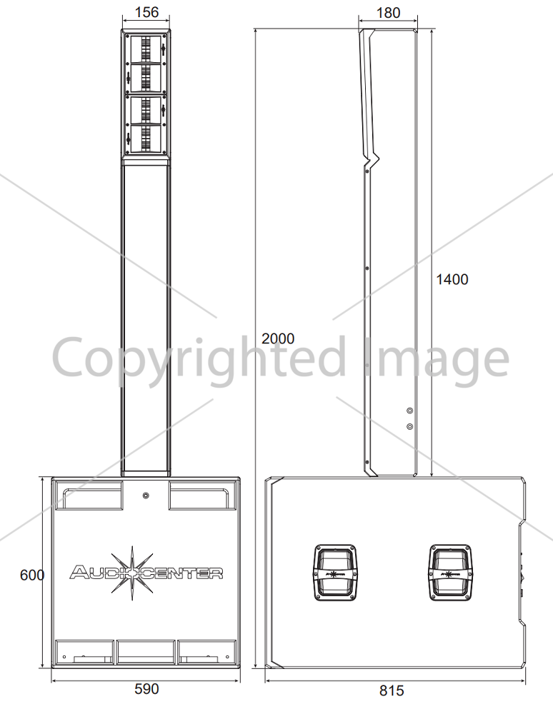 Прибор надежно защищен от перегрева, перегрузок на входе/выходе, короткого замыкания, постоянного тока, перенапряжения или его недостатка. Корпус выполнен из фанеры. Динамики расположены под сплошной стальной сеткой. Стакан Ø 35мм в верхней части корпуса. Габаритные размеры 590x600x815 мм, вес 54 кг. Питание AC 220В.