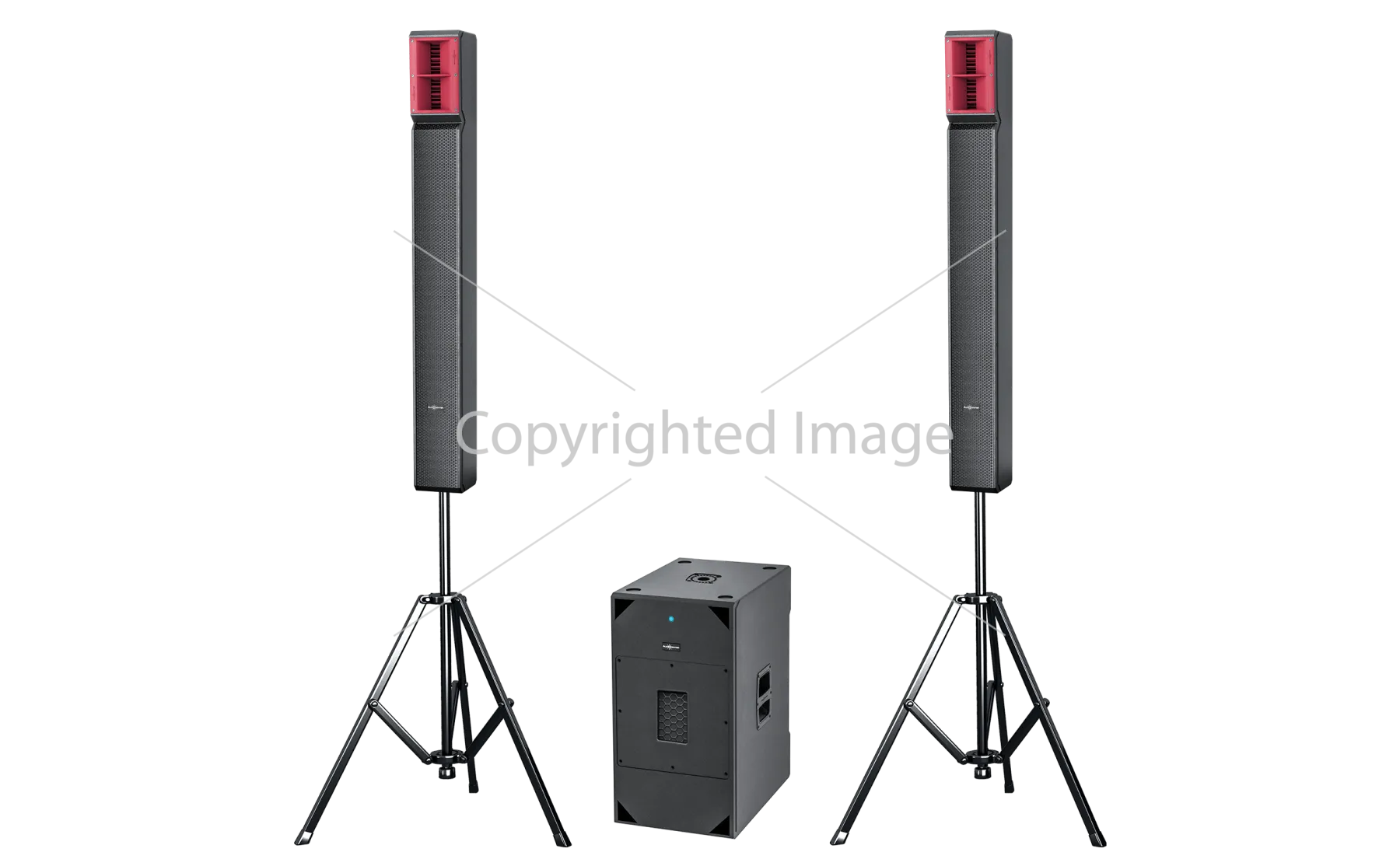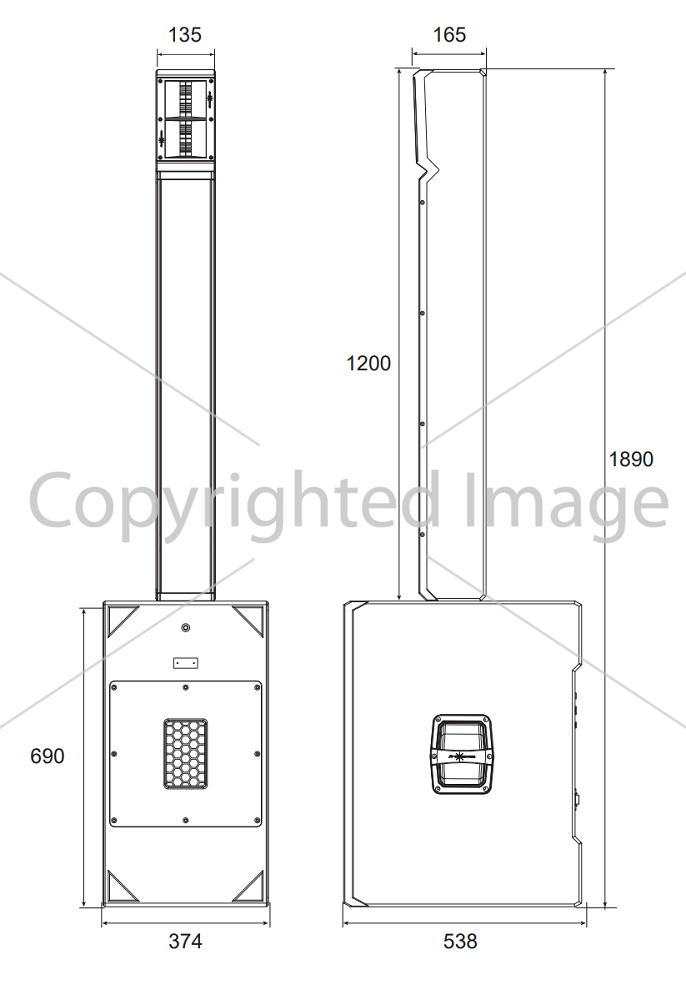 Сабвуфер оснащён двумя НЧ-динамиками диаметром 12 дюймов каждый. При создании применялись инновационные технологии: волноводная ETETM (формирует идеальную АЧХ от всех динамиков) и PhycalTM (физическая калибровка) для улучшения вертикального покрытия.