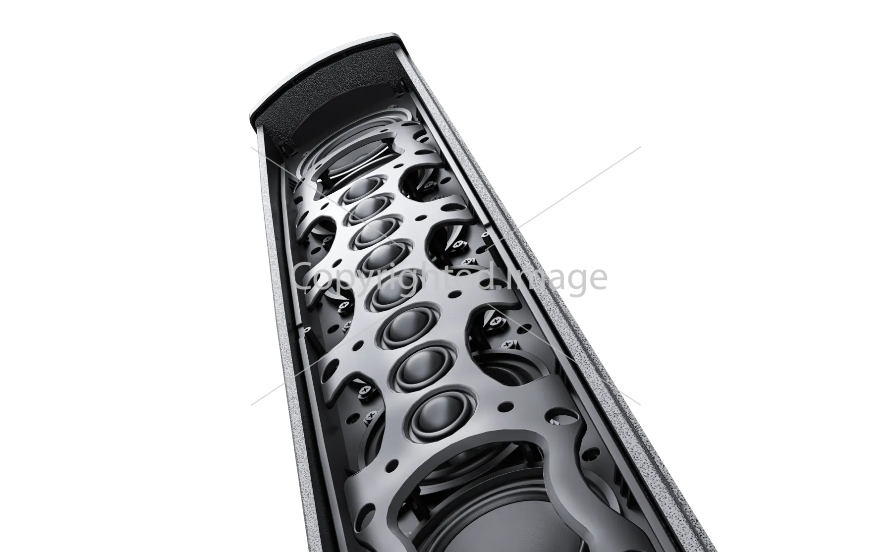 Пассивная колонка T65 с линейными источниками Hi Z и Low Z состоит из 6 шт. 5” НЧ-драйверов и 8 шт. купольных твитеров. По сравнению с другими колонками такого же размера, T65 обладает более динамичным и ровным звучанием, а также более широкой частотной характеристикой. Драйверы расположены с помощью тщательно продуманных расчетов и технологии физической калибровки PhycalTM. ВЧ-динамики имеют уникальную конструкцию T-eyeTM , расположенную в виде массива типа “нос”, что делает вертикальный охват T65 намного шире, обеспечивает хорошо сбалансированное и ровное звучание в ближнем и дальнем поле.