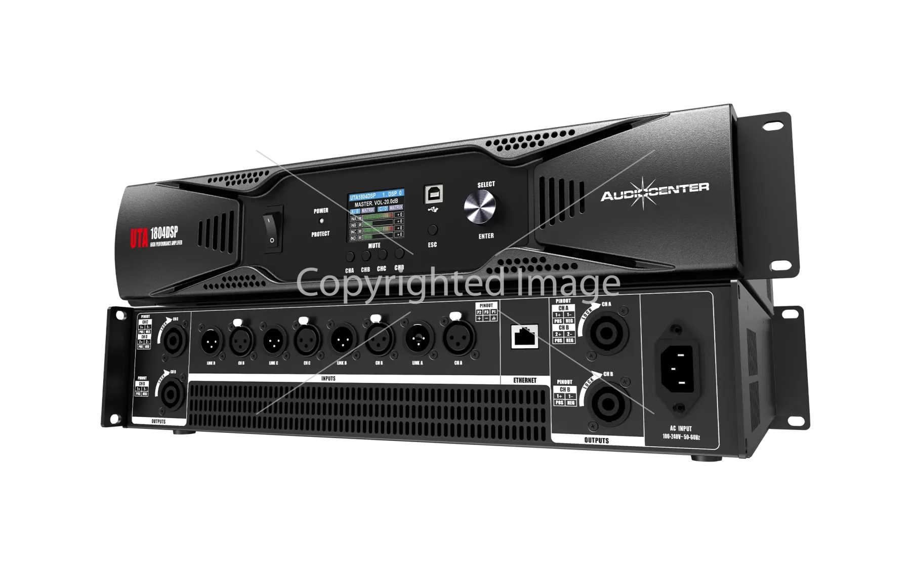 UTA1804DSP – это четырехканальный цифровой усилитель мощности, объединяющий технологию усиления мощности класса D с высокоточной цифровой обработкой сигнала DSP, что повышает качество звучания и удобство управления.